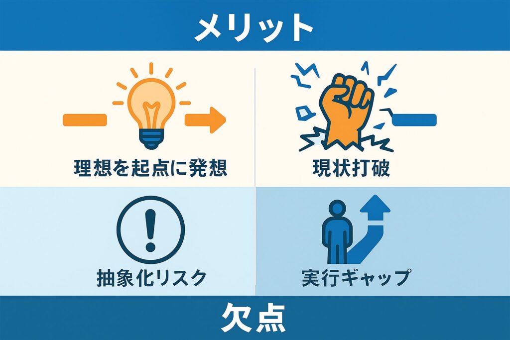 バックキャスティングには「抽象的すぎる」「行動が曖昧になる」という欠点もあります。