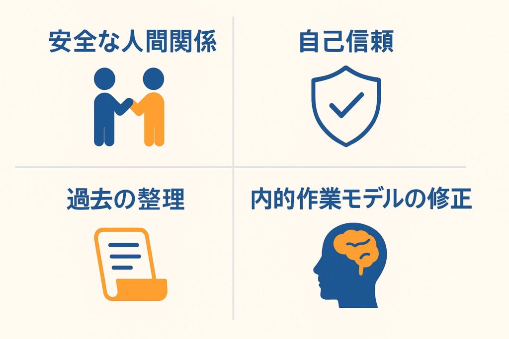 - 新しい関係性で「信じても裏切られない」という再学習をする