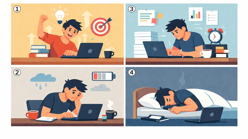 限界まで頑張ってしまう → 途中で止まれない → 一気に崩れる