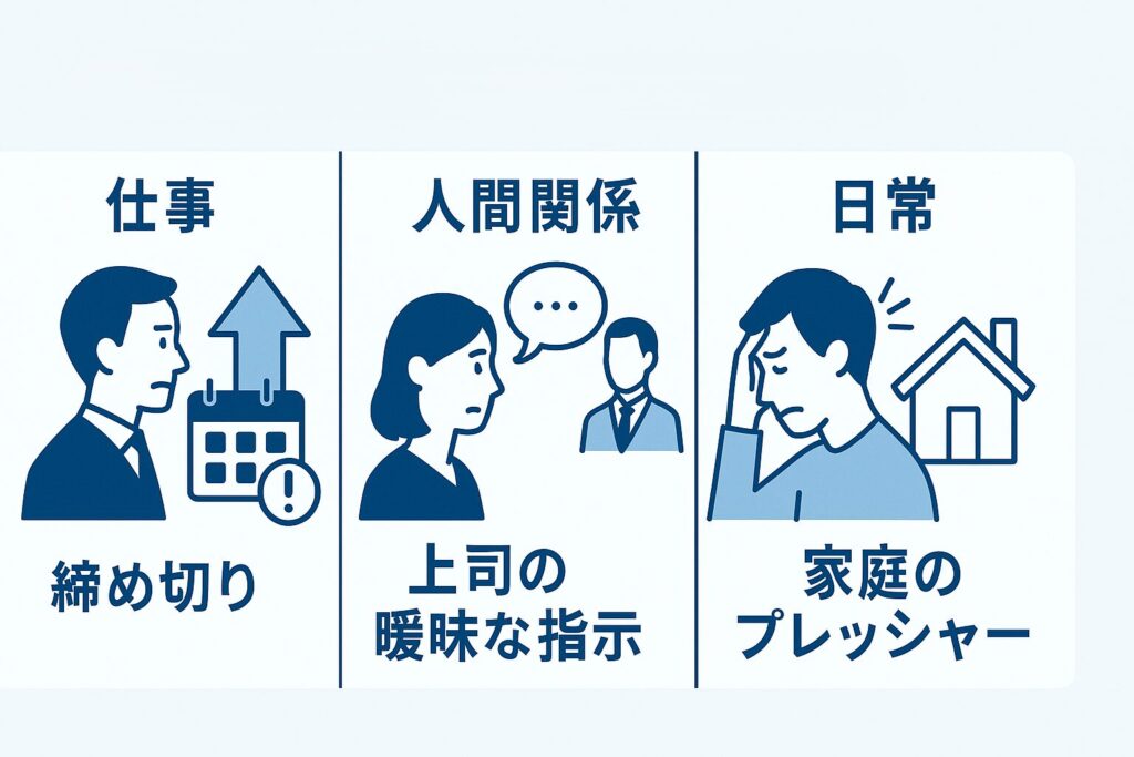 仕事が忙しい、締め切りがきつい、上司の指示が曖昧、人間関係で疲れる…