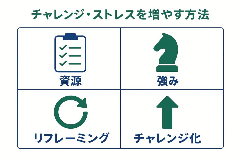 - チャレンジ・ストレス:成長・集中・自己効力感が高まる