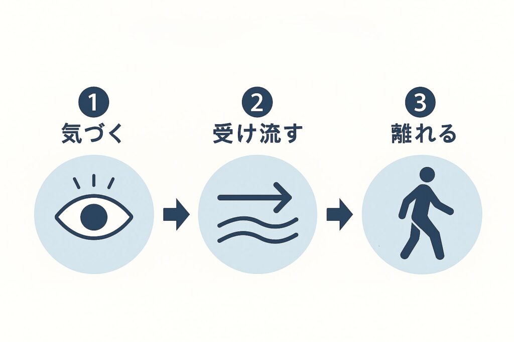 そこで効果的なのが、段階的に“思考を客観視する”3ステップ法です。