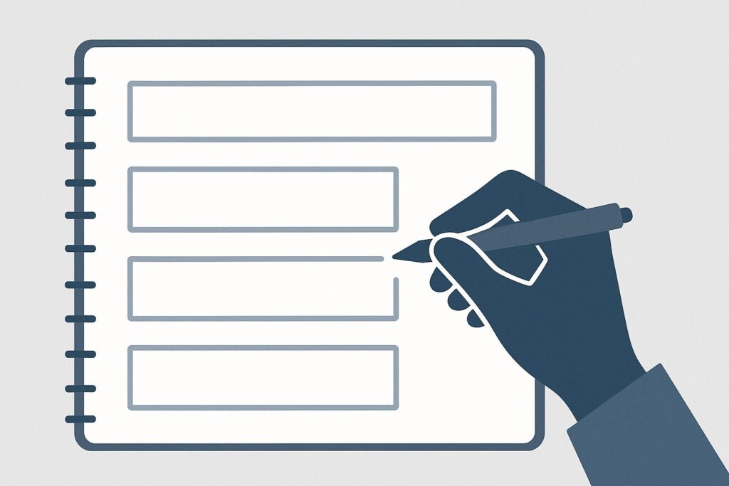 ノートで書く5ステップの方法、忙しい日の1行テンプレ、ChatGPTで自動進行できる版まで、すぐ実践できる形でまとめました。