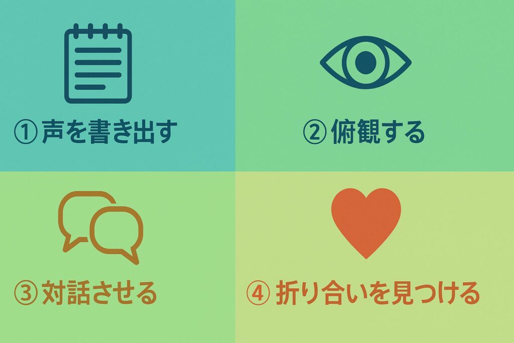 ここでは、初心者でも実践できる4つのステップで「内なる対話」を整える方法を紹介します。