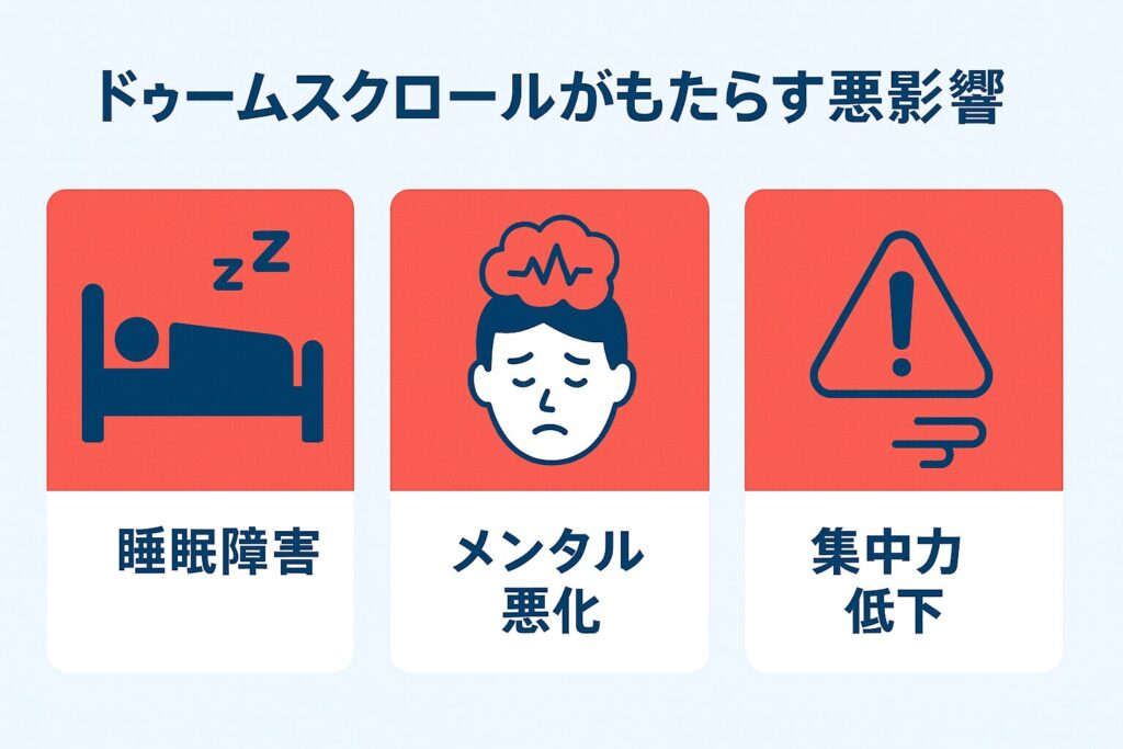 ドゥームスクロールは、特に夜のスマホ利用で深刻な影響を与えます。