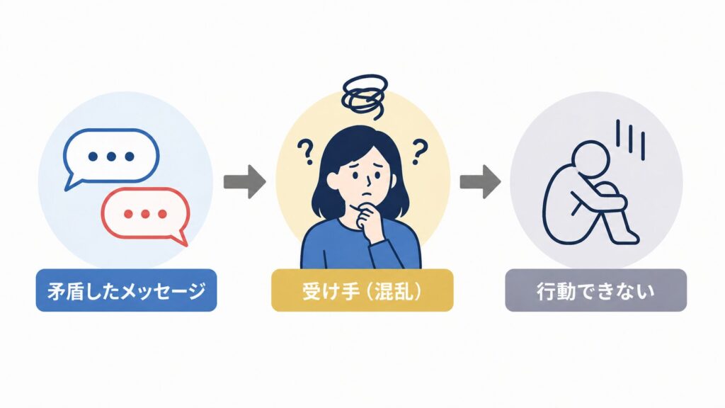 その結果、受け取る側は一貫性のないメッセージを受け取り、混乱しやすくなります。