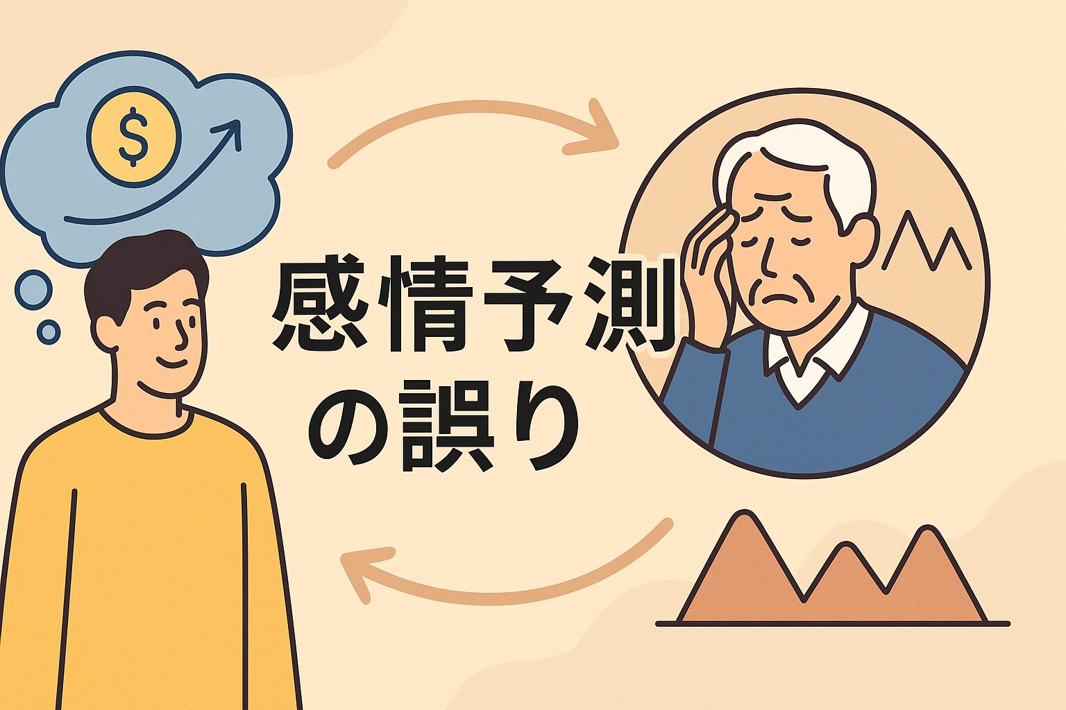 老後に後悔する心理的バイアスとして、感情予測(未来の気持ちの見積もり)の誤りや、