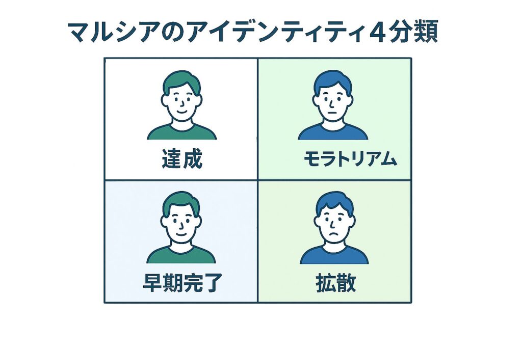 | ② モラトリアム型(Moratorium) | 迷いながらも、自分を探して積極的に試している | 不安定だが成長中。悩みが多いが自己理解が進んでいる。 |