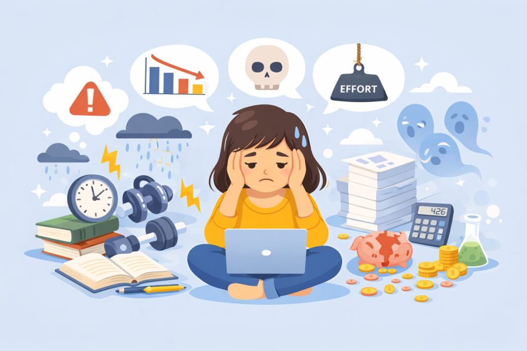 例:「勉強すると遊ぶ時間が減る」「失敗して恥をかくかもしれない」