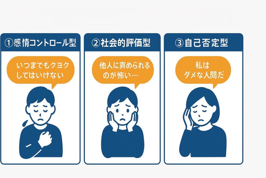 | ① 心配(Worry) | 未来の危険を想定して、何度も最悪のシナリオを考える | 「また失敗したらどうしよう…」 |