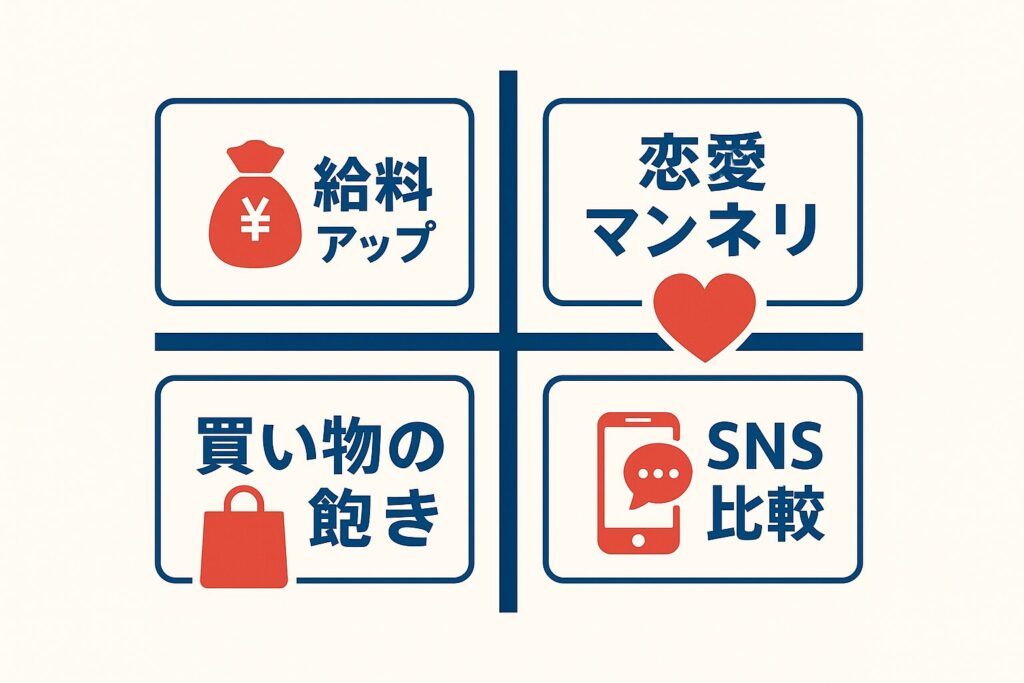→ ホメオスタシス、ドーパミン、社会比較、欲求の上昇が原因。 - 恋愛・お金・SNS・買い物で強く起こる