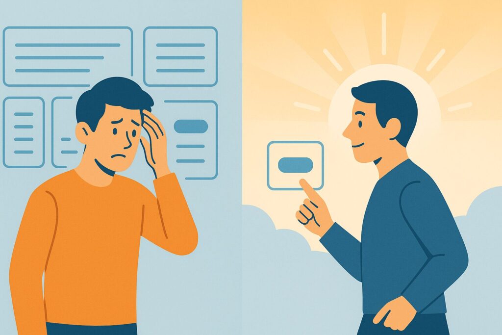 「メニューが多すぎる」「ボタンが並びすぎている」と、ユーザーは一瞬で疲れて離脱します。