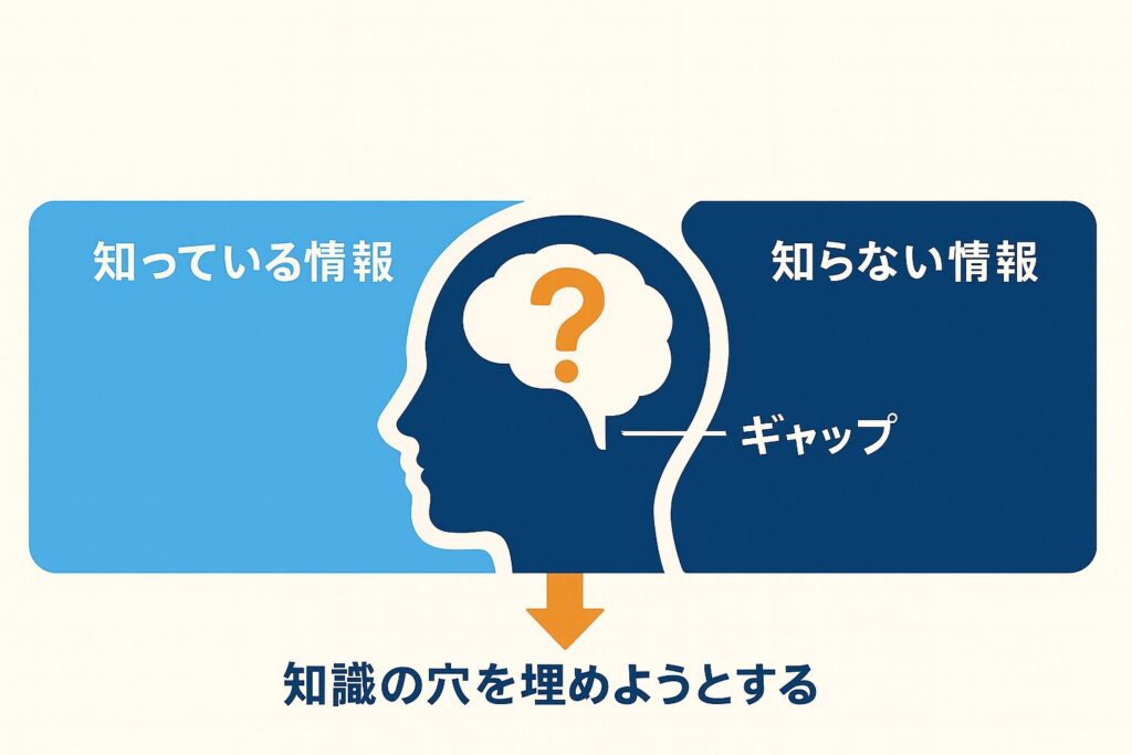 情報ギャップ理論では、「知っていること」と「知らないこと」の差(ギャップ)が生じた瞬間、