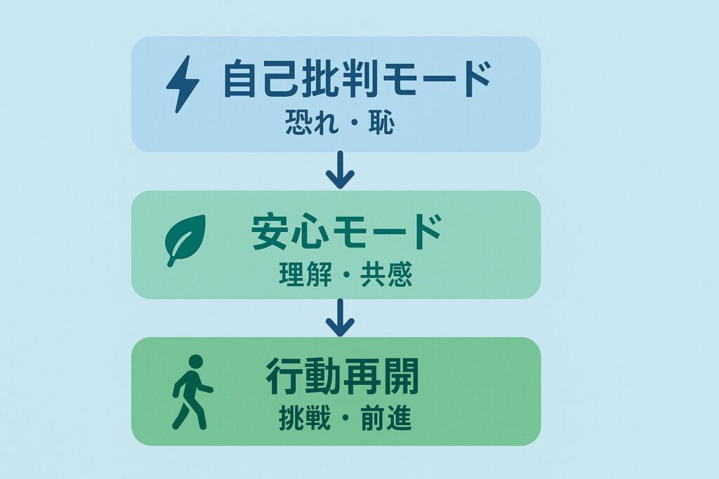 人は「自分を責めるモード」から「安心して回復できるモード」に切り替わります。