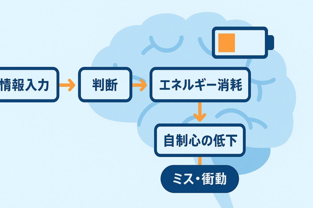 何度も判断や選択を繰り返すことで、脳のエネルギーが消耗し、意思決定力が低下する現象のことです。