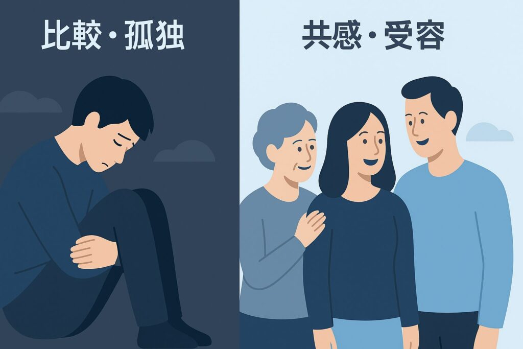 比較モード | 「自分はあの人より劣っている?」 | 焦り・嫉妬・孤独感が強まる |