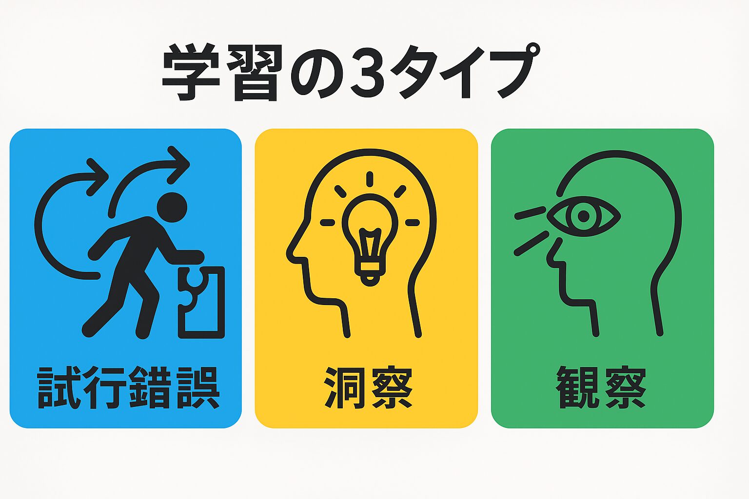 実は、私たちの学び方には 試行錯誤・洞察・観察(モデリング) という3つのタイプがあります。
