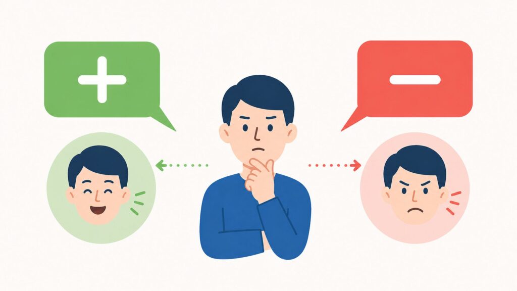 「何を言うか」よりも「どう感じさせるか」が影響しやすい場面も多いです。