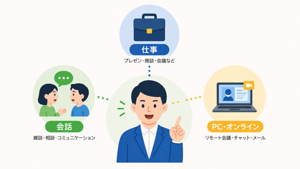 - プレゼン:内容に合わせた表情や声の強弱で説得力を高める