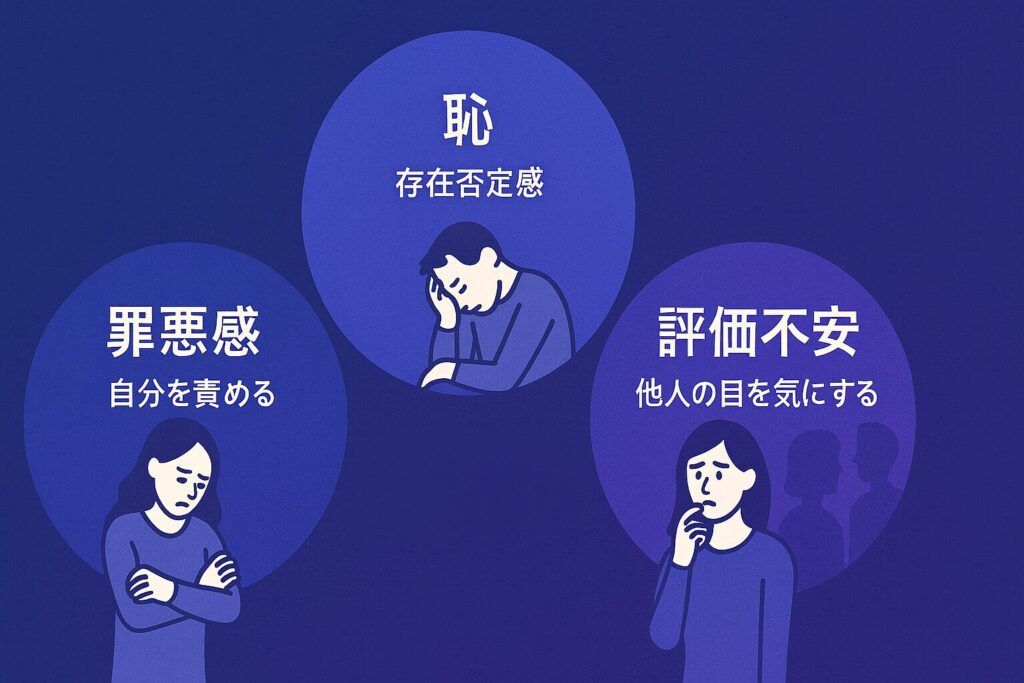その奥には、罪悪感・恥・評価不安といった深い心理メカニズムが潜んでいます。