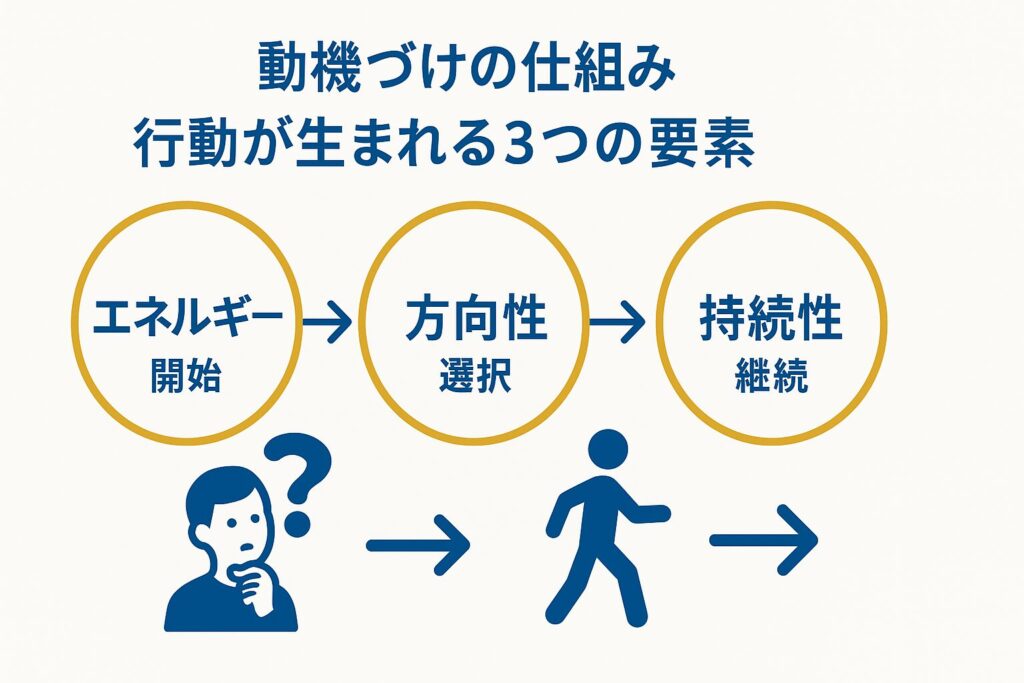 動機づけの仕組み|行動が生まれる3つの要素(エネルギー・方向性・持続性)
