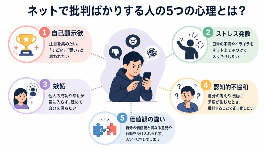 この記事では、ネットで批判ばかりする人の心理や特徴をわかりやすく解説しながら、