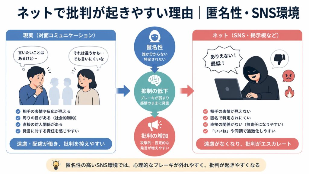 ネットではその違いがぶつかりやすく、批判につながりやすいのが特徴です。