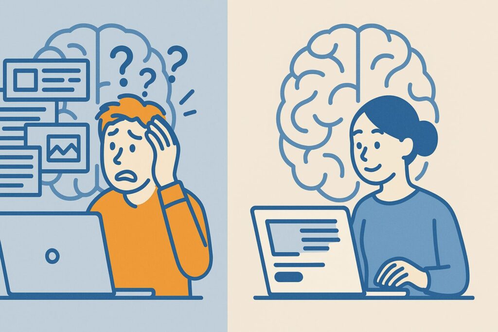 ここでは、認知負荷とは何か、なぜUXで“迷い”が生まれるのかを初心者にも分かるように解説します。