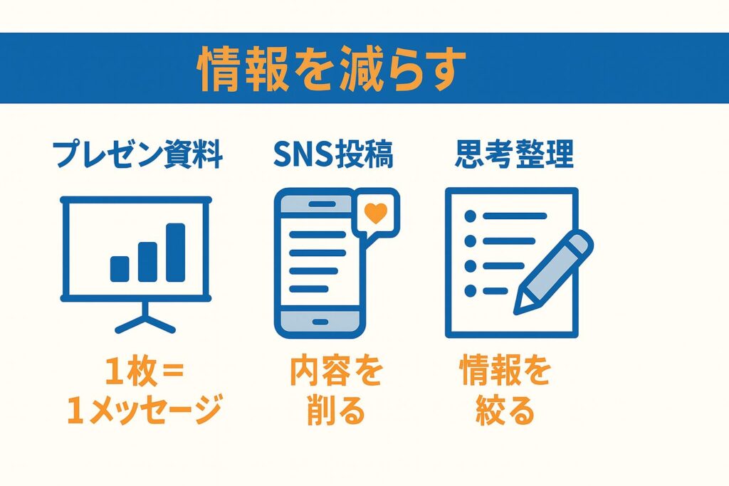 ① プレゼン資料やSNS投稿でも“情報を減らす”が基本