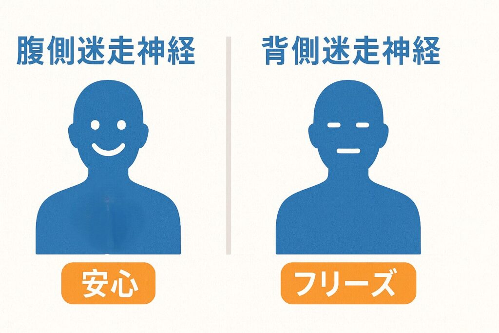 まず、安心を感じる神経状態は、腹側迷走神経(ventral vagal)が働いているときです。
