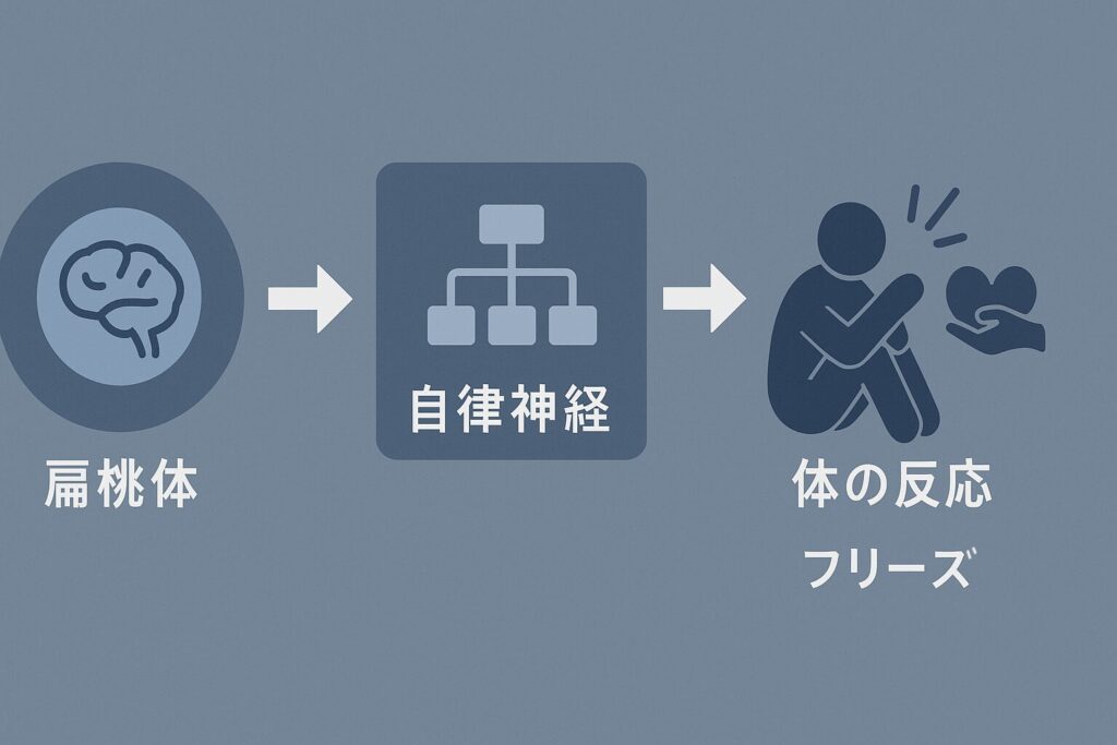 これは、極度のストレスや恐怖で体が固まる(フリーズ)ときに起こります。