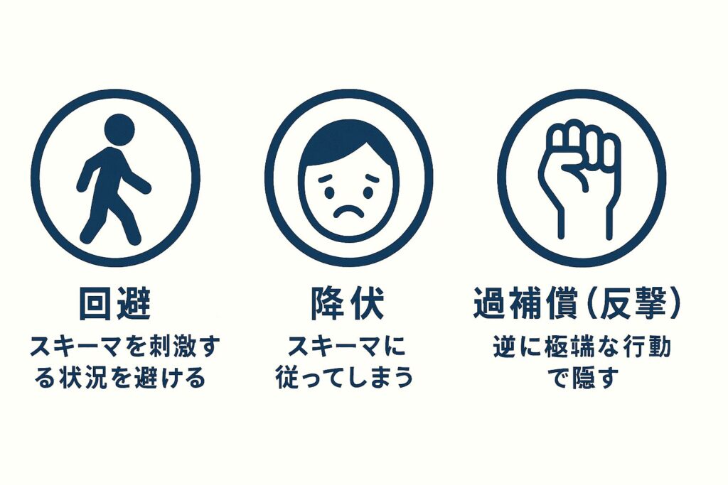 • 回避:スキーマを刺激する状況を避ける(例:人間関係から逃げる)