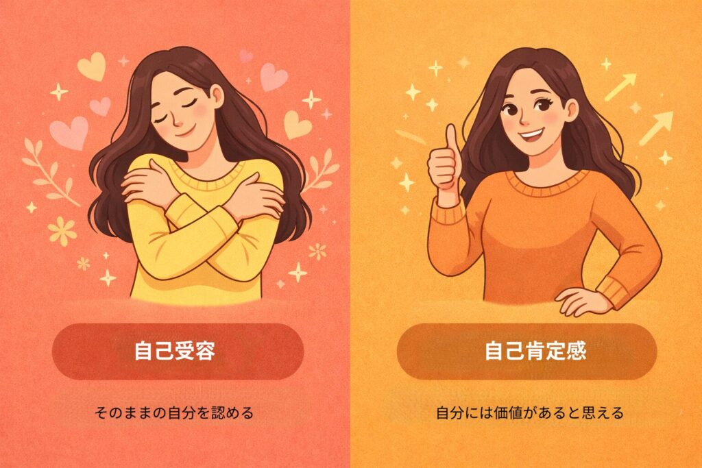 このように、自己受容は“土台”で、自己肯定感は“その上に乗る感覚”です。