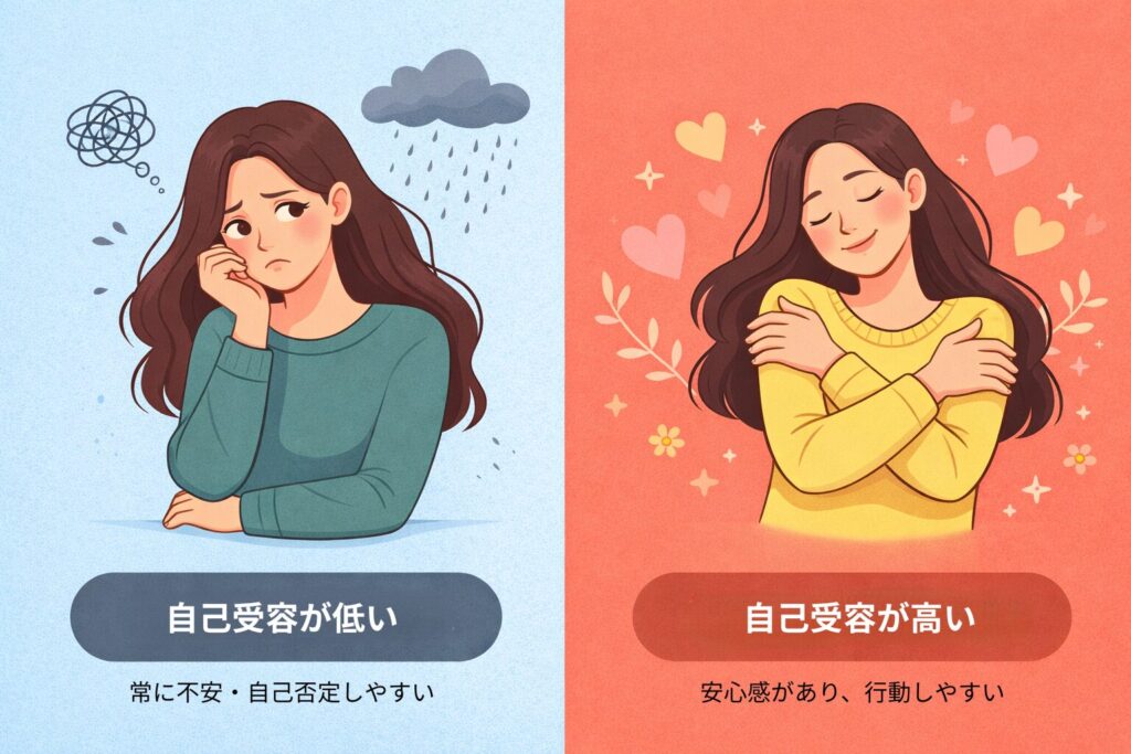 | 自己受容が低い | 常に不安・自己否定しやすい |