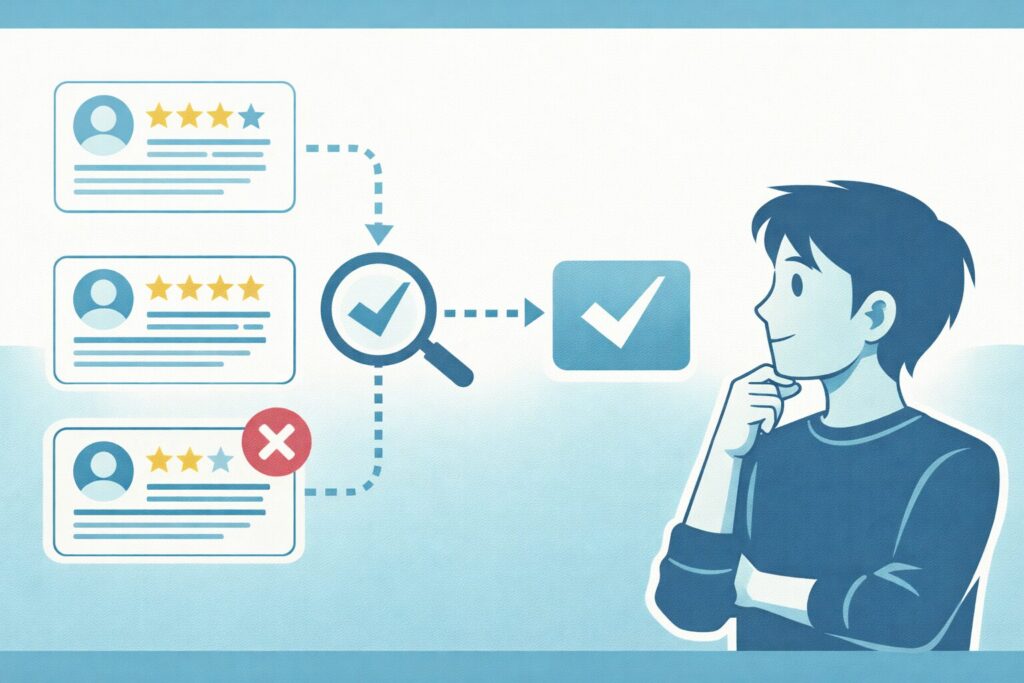 ★の数やレビューが多いと「良さそう」と感じる一方で、「本当に信用していいの?」「自分は流されているだけかも…」