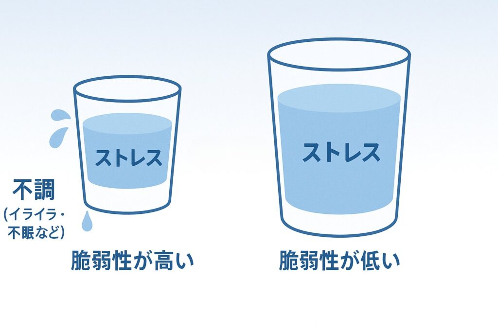 ストレス脆弱性モデルは、「コップと水」のたとえでよく説明されます。