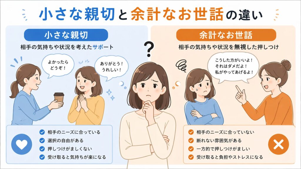 しかし実際には、すべての親切が「ありがたい」と感じられるわけではありません。