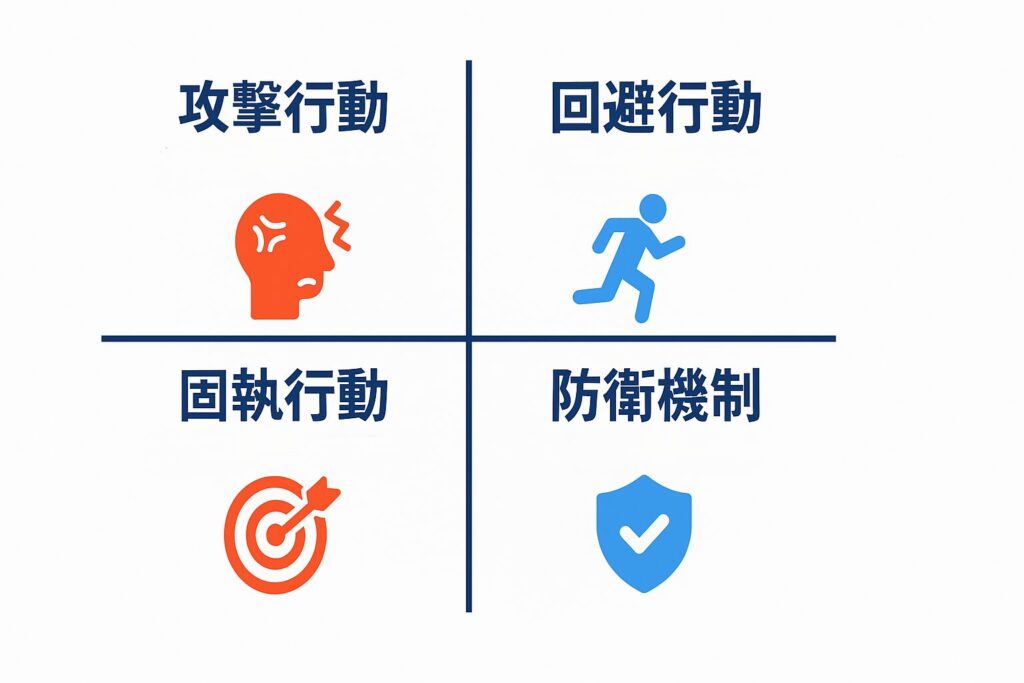 心理学の研究では、人が不満を感じたときに取りやすい行動は、大きく4つに分類できることが分かっています。