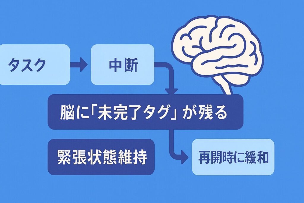 脳は緊張を解消しようとするため、未完了のタスクを何度も思い出し、再開や完了を促します。